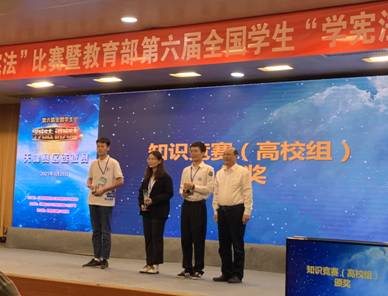 选手中产生,竞赛题目难度再次升级,涉及党史知识、宪法、立法法、选举法、公司法等诸多领域,对参赛选手的知识储备、专业基础提出了更高挑战。最终,万欣悦凭借出色表现斩获知识竞赛冠军,并将与小学组、中学组冠军一同代表天津参加全国学生“学宪法 讲宪法”知识竞赛。在演讲比赛中,冯肃雅从人民精神意志的凝结和中华文明的传承两个角度深入的阐述了“宪法力量”,获得了高校(高职)组演讲比赛三等奖。