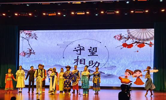 作品由朗诵、歌唱、舞蹈相融合,深情演绎了《守望相助》,意寓着各民族在中国共产党的领导下,携手同心,守望相助,幸福永远!