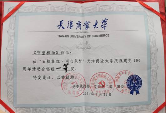 学子在校建党100周年文艺比赛中获得合唱组一等奖