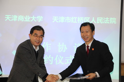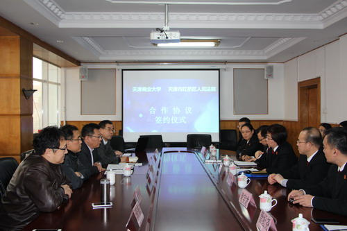 与红桥区人民法院签订合作协议。副校长齐恩平、产学研办公室主任李勤国,红桥区人民法院院长刘莉、副院长郭书宏、耿宝东、研究室主任南宝龙等一行10人以及污污漫画
