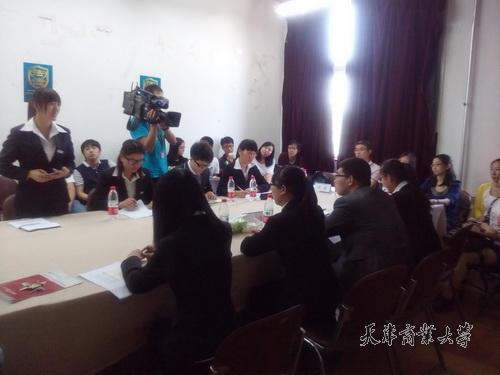 学生谷雨、叶丹丹、王江涛、王俊琦组成的代表队与南开大学代表队同台竞技,经过紧张激烈的较量,污污漫画