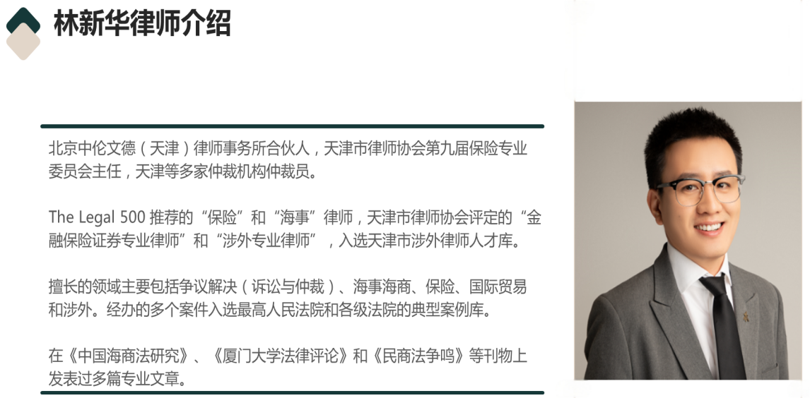 讲座共涉及国际货物买卖、国际货物运输和国际保险三个专题,林律师结合自己所处理的真实案例进行了讲授,这些案例大部分入选了最高人民法院的典型案例,对法律实践指导意义重大。通过对案件事实的介绍、争议焦点及主要法律问题的分析,林律师深入浅出的将国际货物买卖、国际货物运输及国际保险方面的基础理论知识与实践结合起来,给学生做了一场生动的汇报,也向学生全方位展示了律师处理涉外案件的场景。尤为宝贵的是,在每一个案例的最后,林律师都无私地向学生传授了作为一名优秀的涉外律师在处理案件中所获得的宝贵的专业经验和心得体会。最后林律师鼓励学生持续学习、抓住涉外法治发展的机遇,为将来从事涉外法律事务打下良好基础。